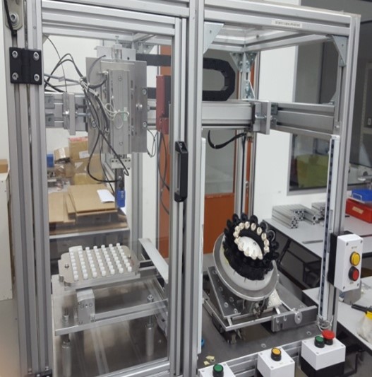 High speed picking robot design to handle small objects of different shapes and sizes. With consideration of limited footprint and minimal downtime, we have designed and installed the machine within short time frame.
